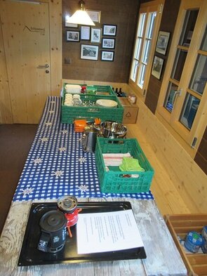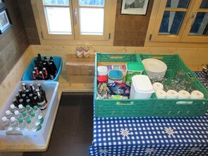 Es gibt im Winterraum keine Koch- oder Heizgelegenheit! Diese muss selber mitgebracht werden! Eine Auswahl an Getränken und Geschirr mit Besteck für 9 Personen stehen bereit.